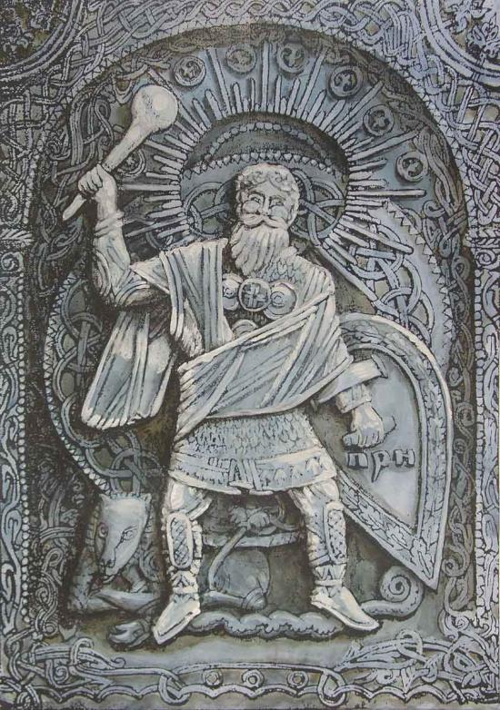 Statue récente de Péroun érigée à Kiev en 2009 par les ridnoviry ukrainiens.